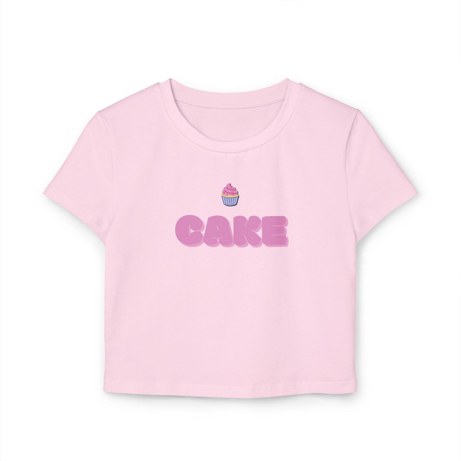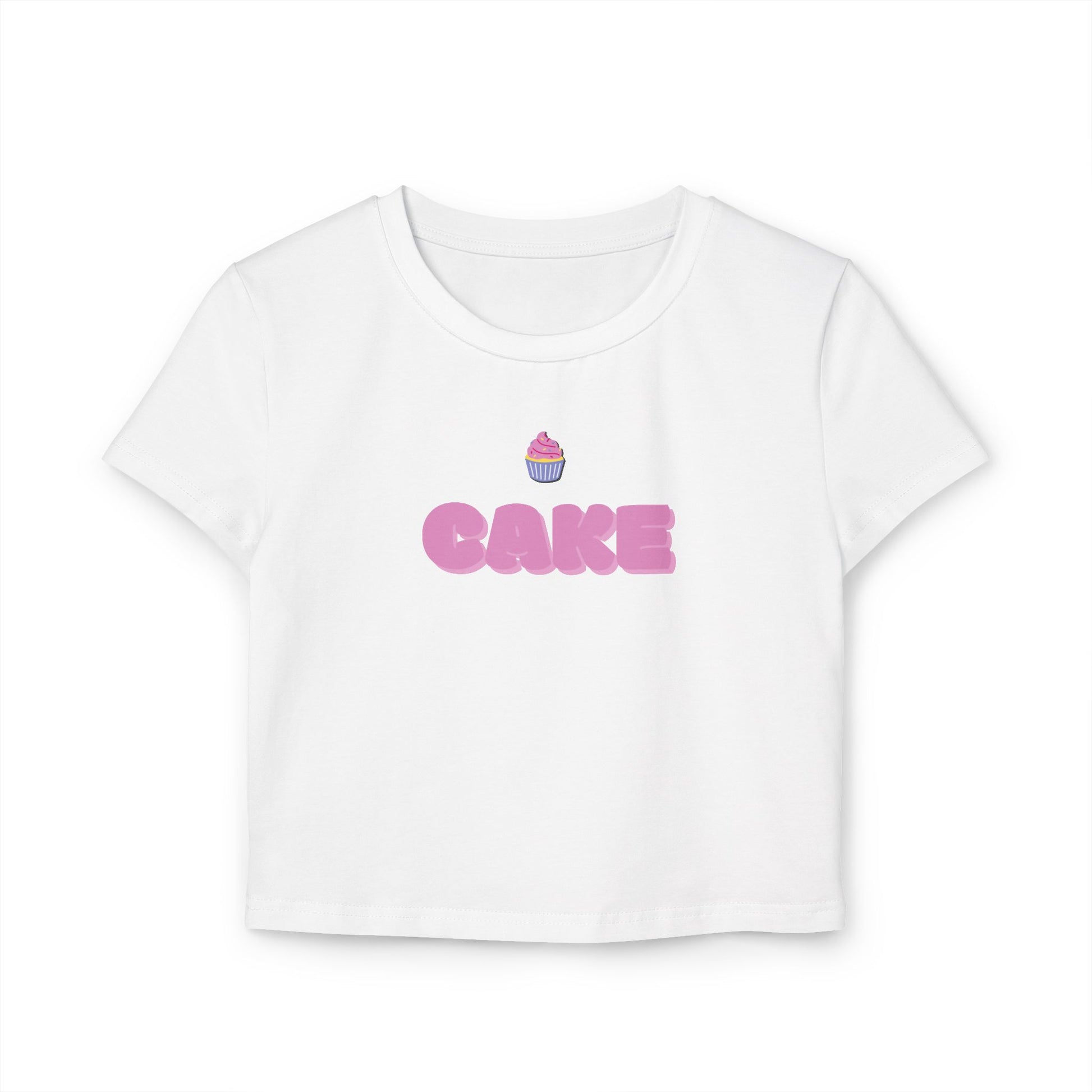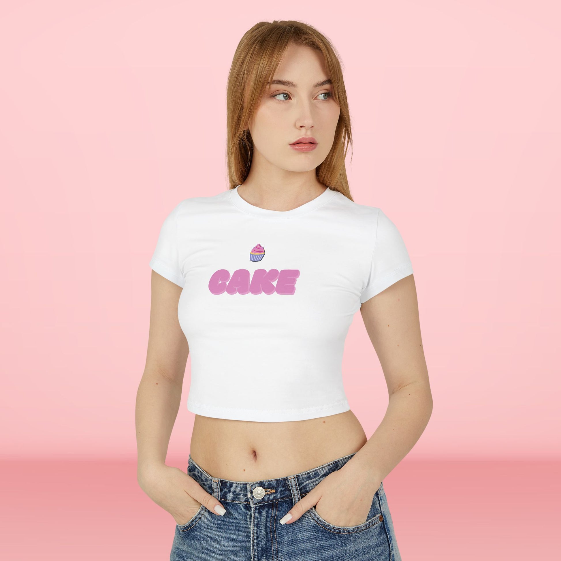 Serve up some sweetness with the Cake Baby Tee, a bold and fun addition to the Sugar! Collection. Featuring hot pink "Cake" lettering and an adorable cupcake graphic, this baby tee is perfect for those who love a playful, statement-making look.