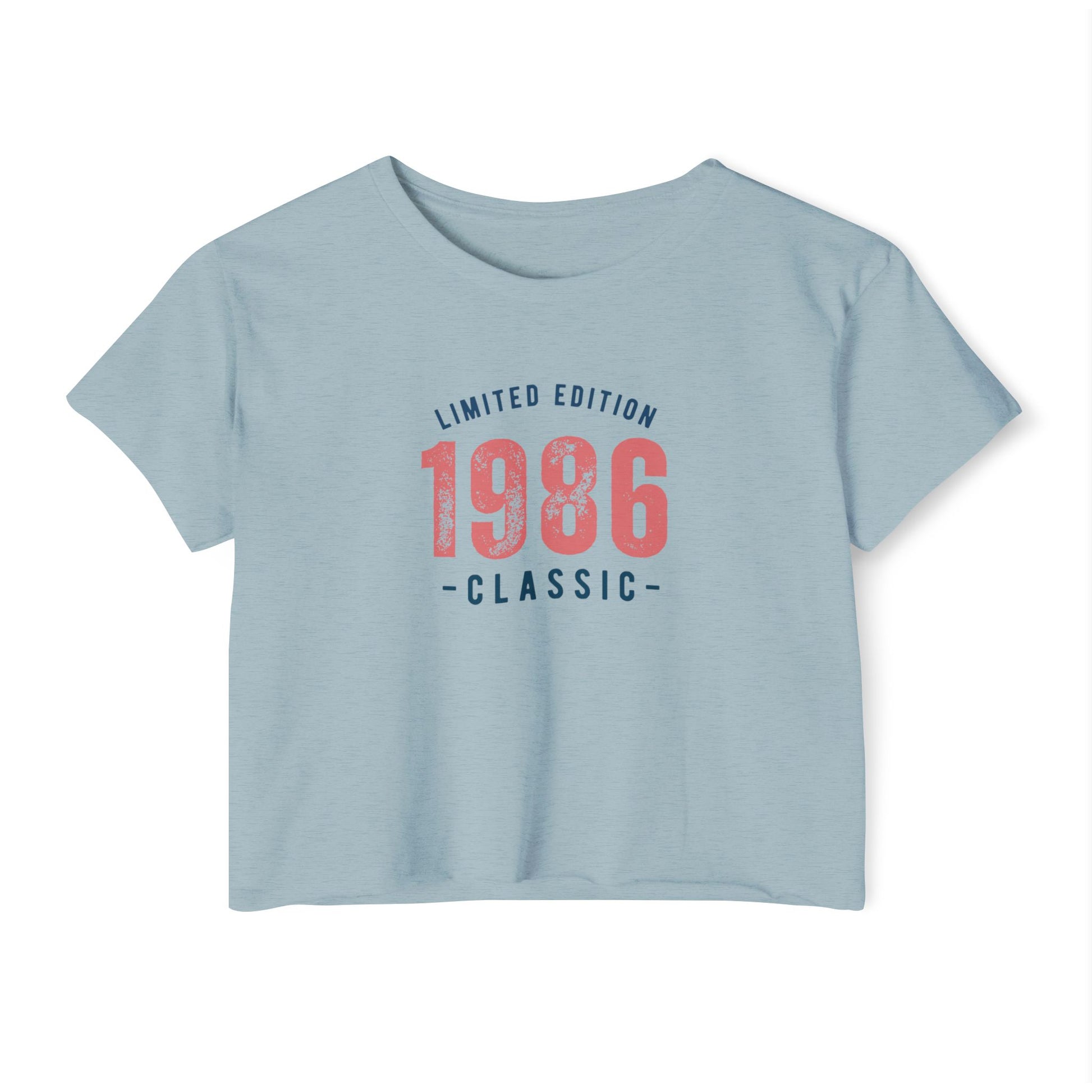 Get festival-ready with the Limited Edition 1986 Classic Crop Top! Embrace vintage vibes with a bold graphic that celebrates the iconic year, adding a throwback touch to your modern wardrobe. Crafted from a comfy 65% polyester and 35% combed, ring-spun cotton blend, this crop top is both soft and durable for all-day wear.