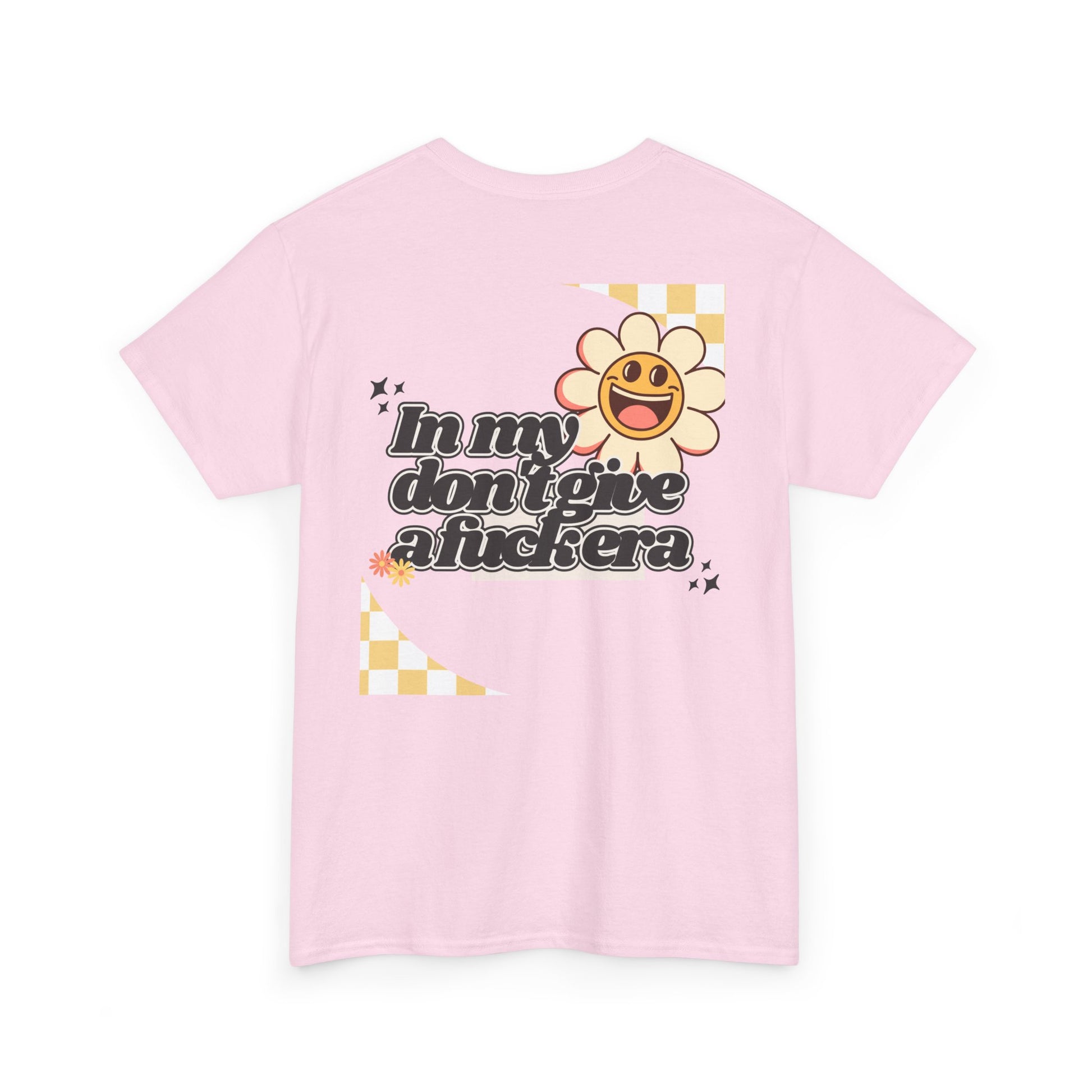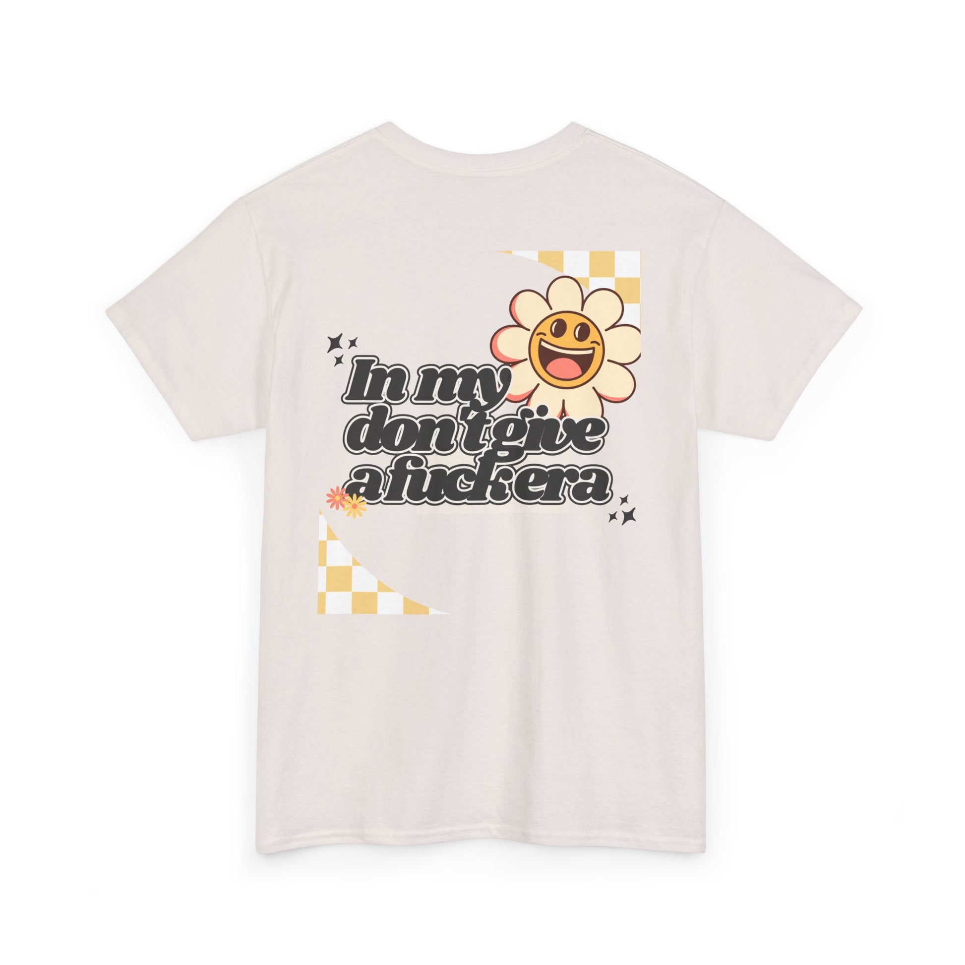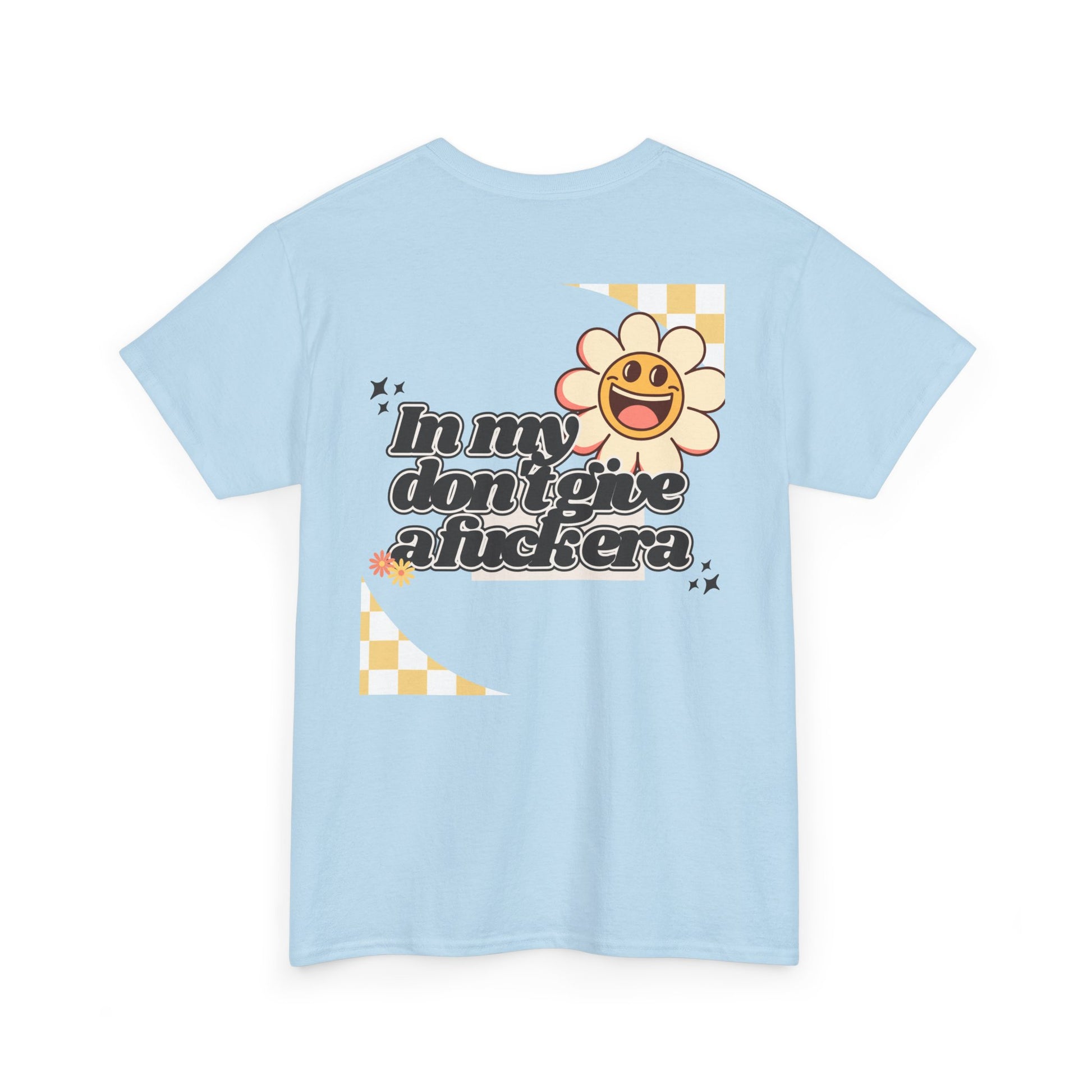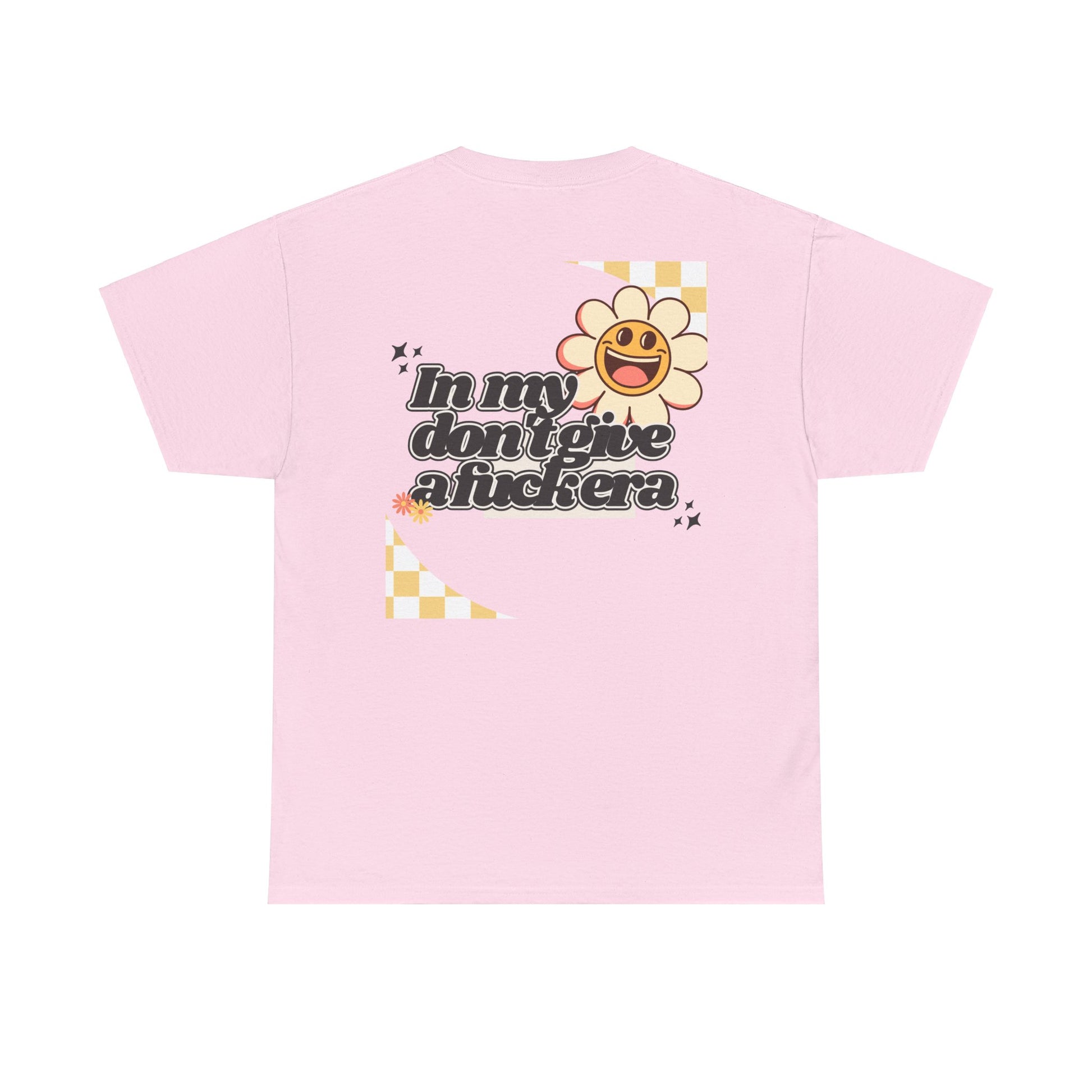 Step into your era of unapologetic self-confidence with our retro-inspired tee! The bold graphic, boasting "In my don't give a fuck era" in a striking retro font, celebrates the woman who is happy, content, and humble in her own life—and simply doesn't give a fuck.
