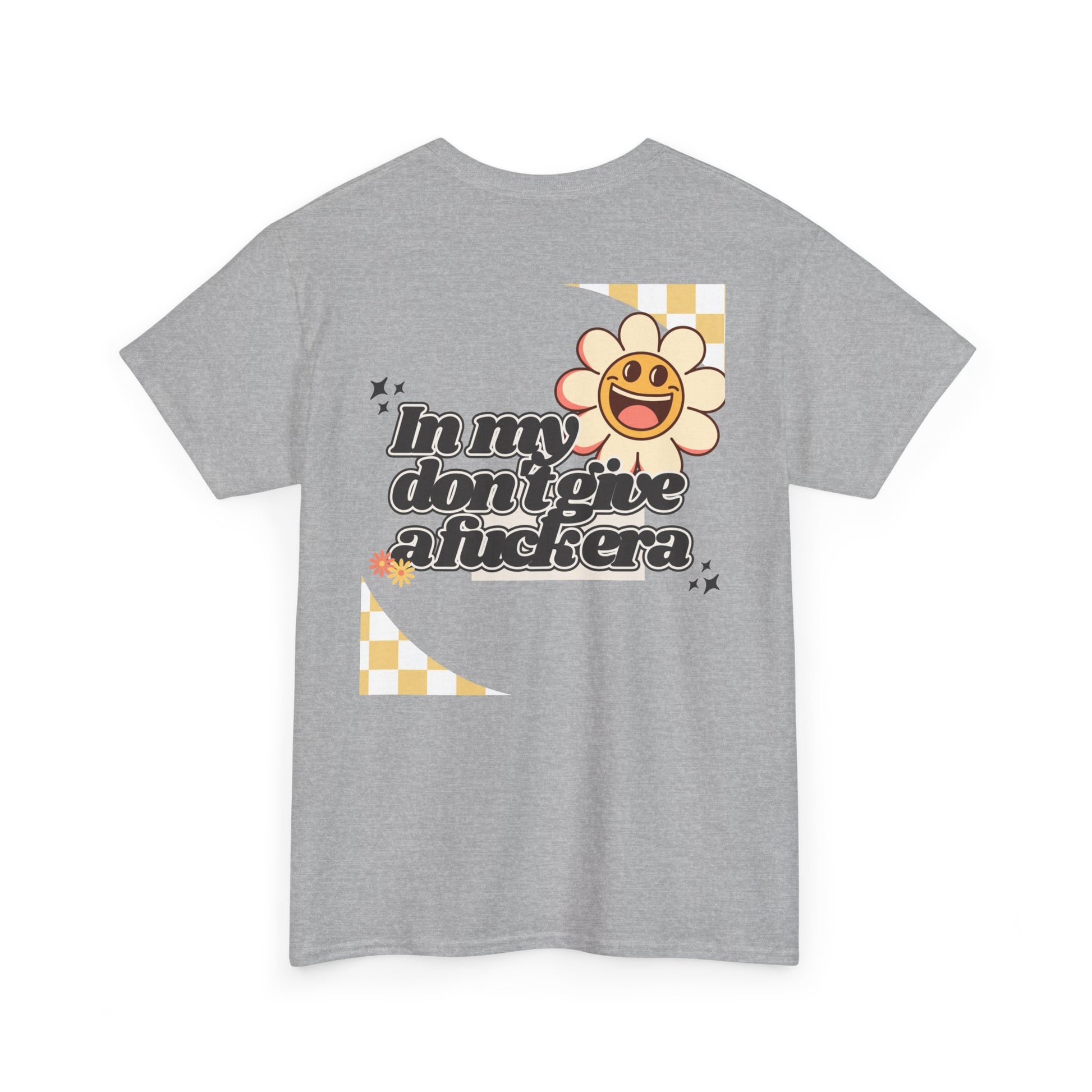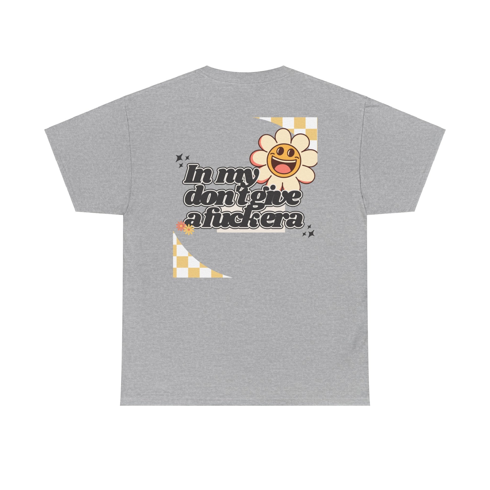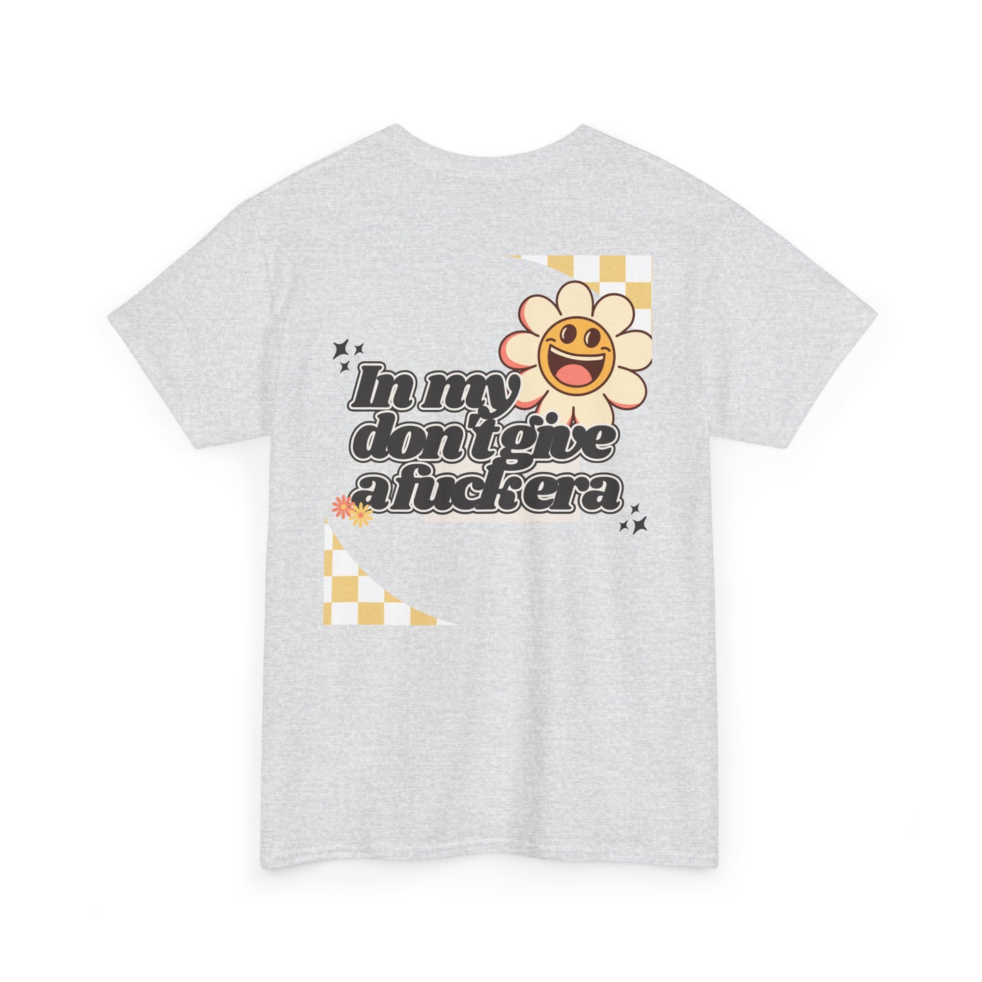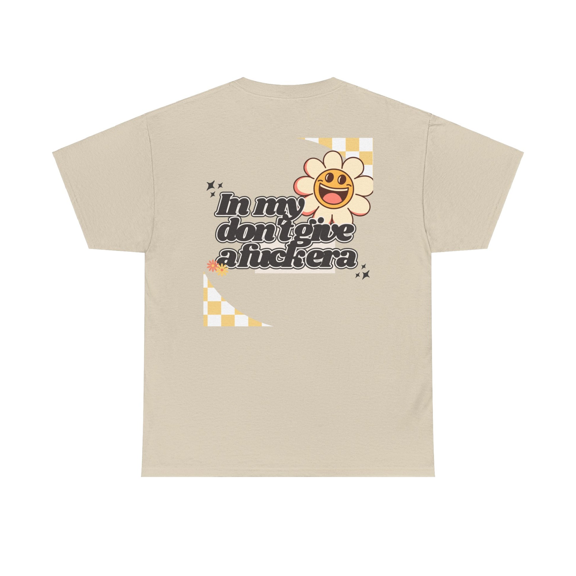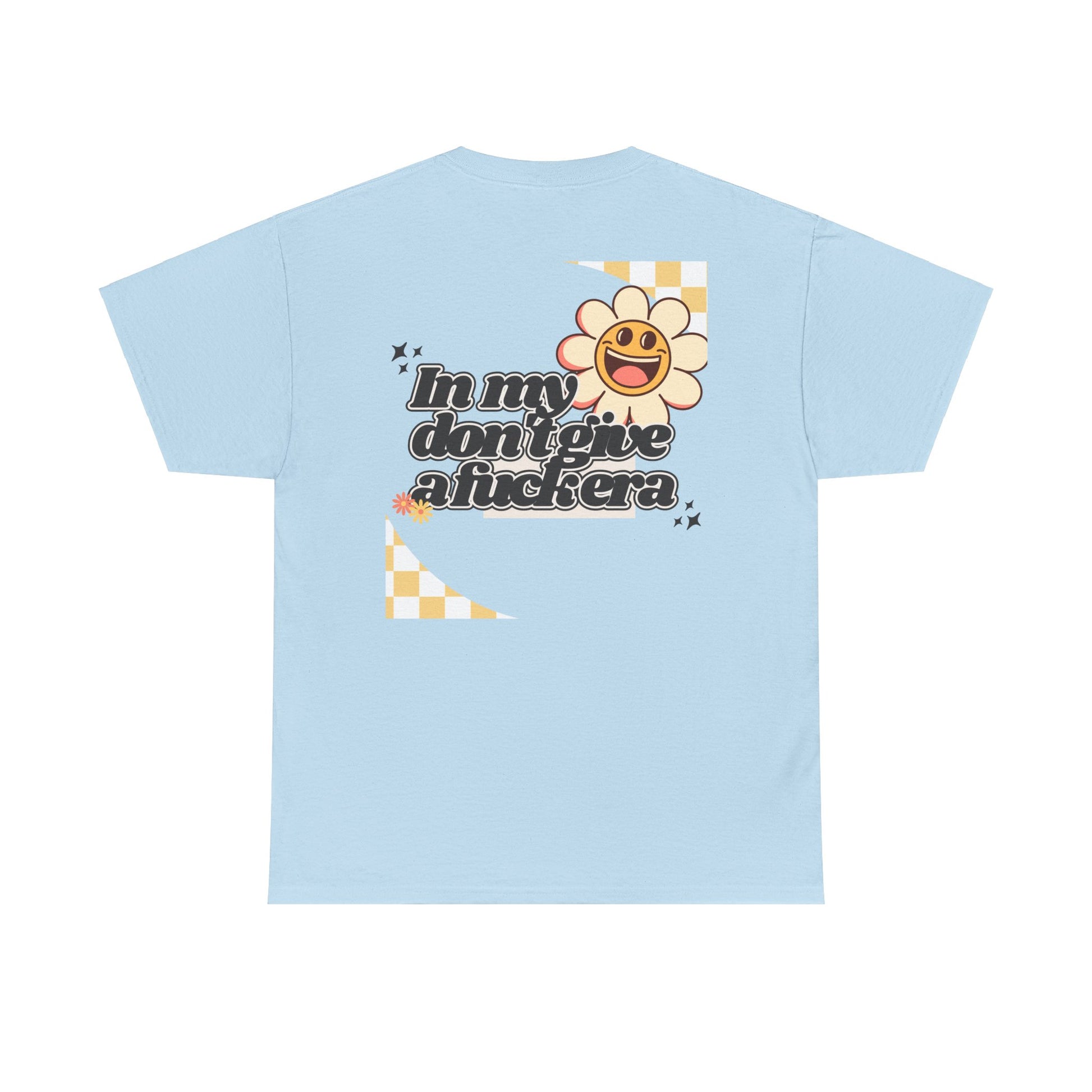 Step into your era of unapologetic self-confidence with our retro-inspired tee! The bold graphic, boasting "In my don't give a fuck era" in a striking retro font, celebrates the woman who is happy, content, and humble in her own life—and simply doesn't give a fuck.
