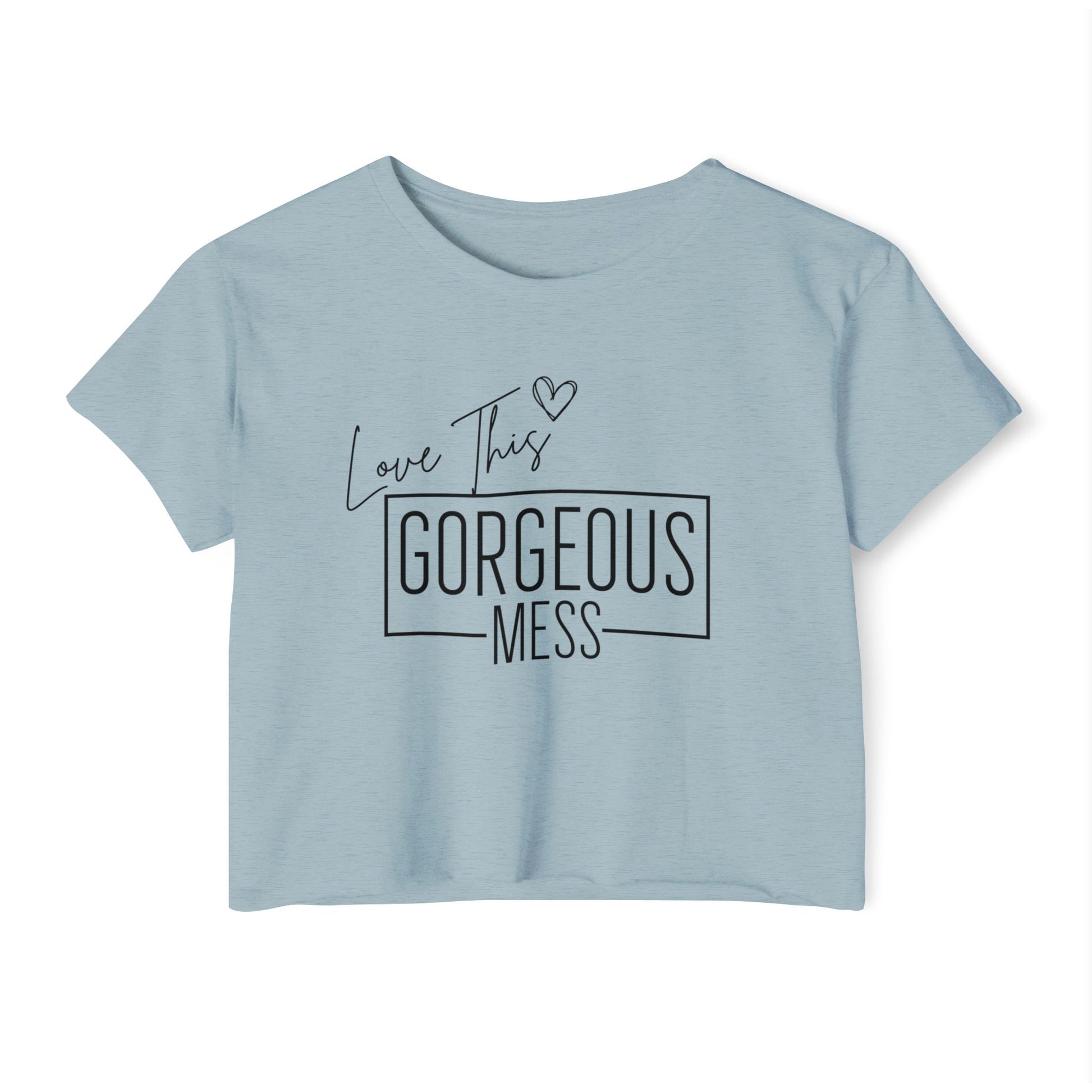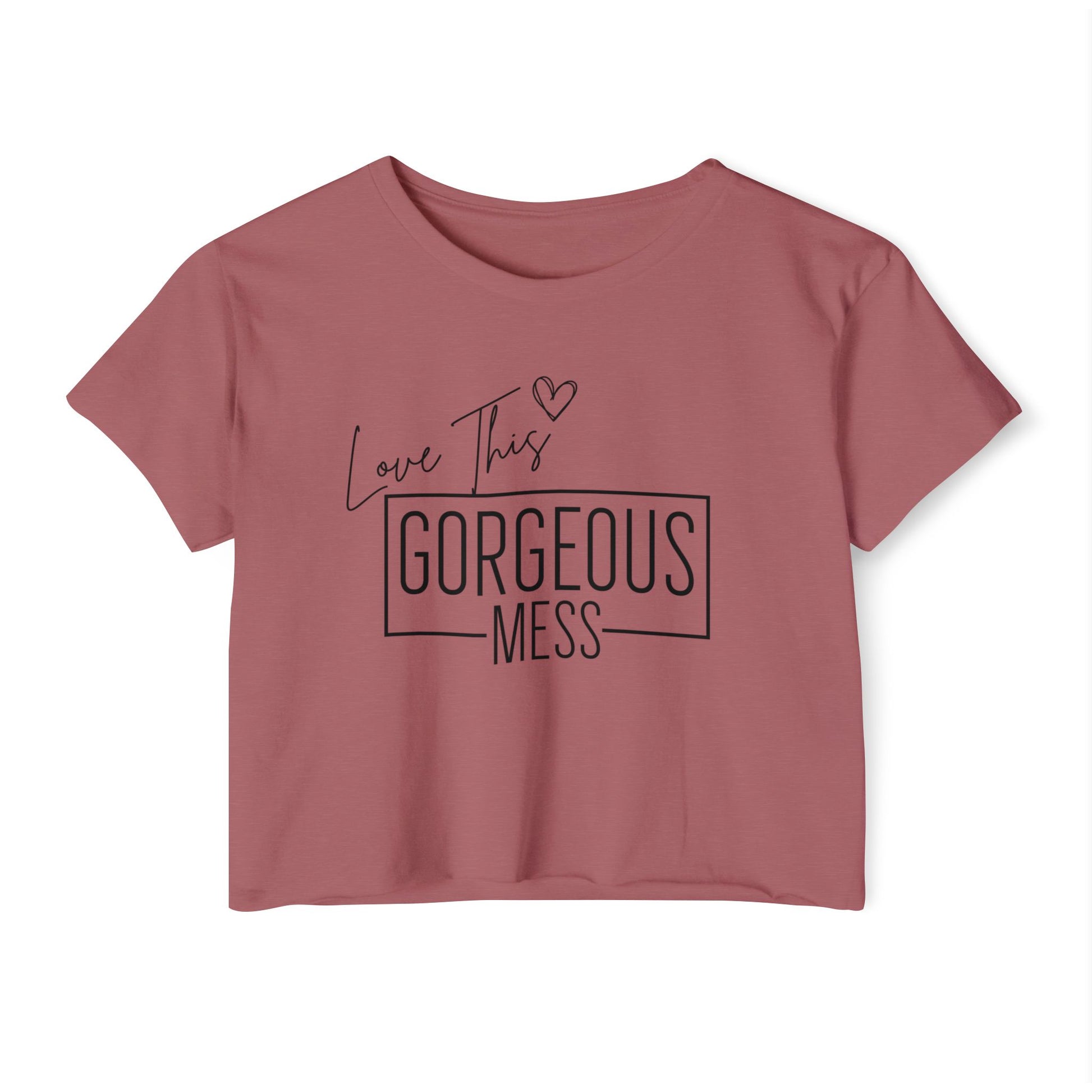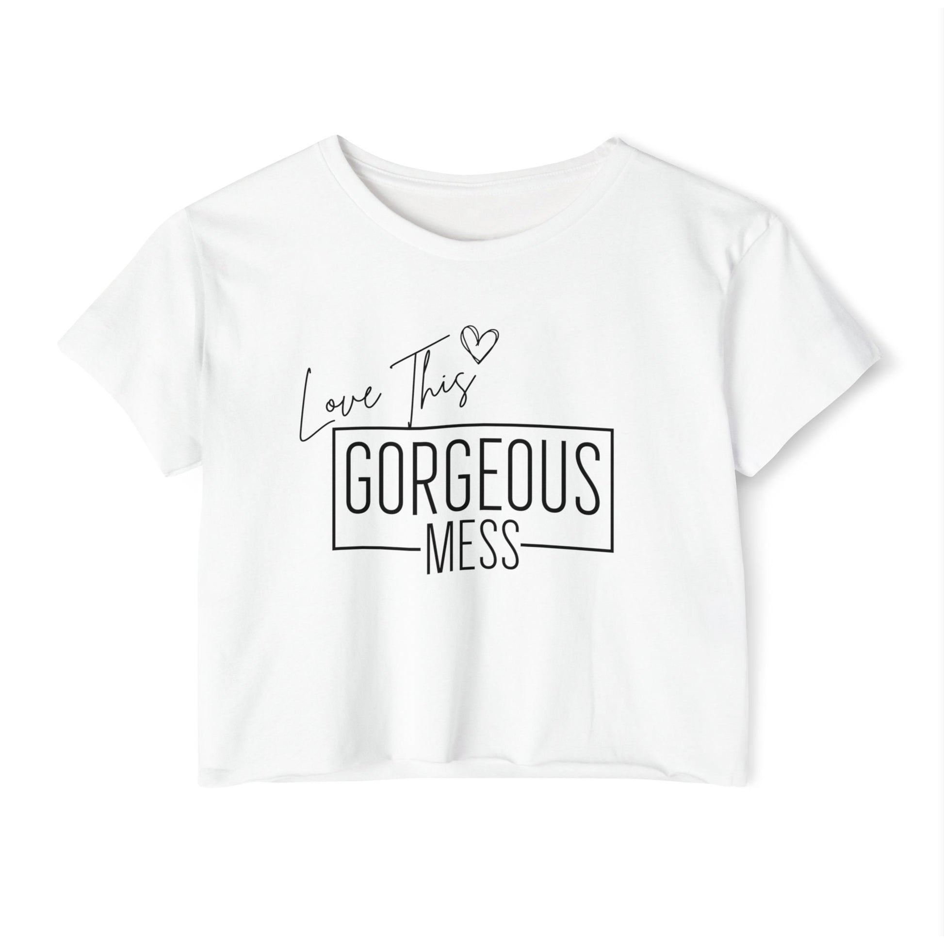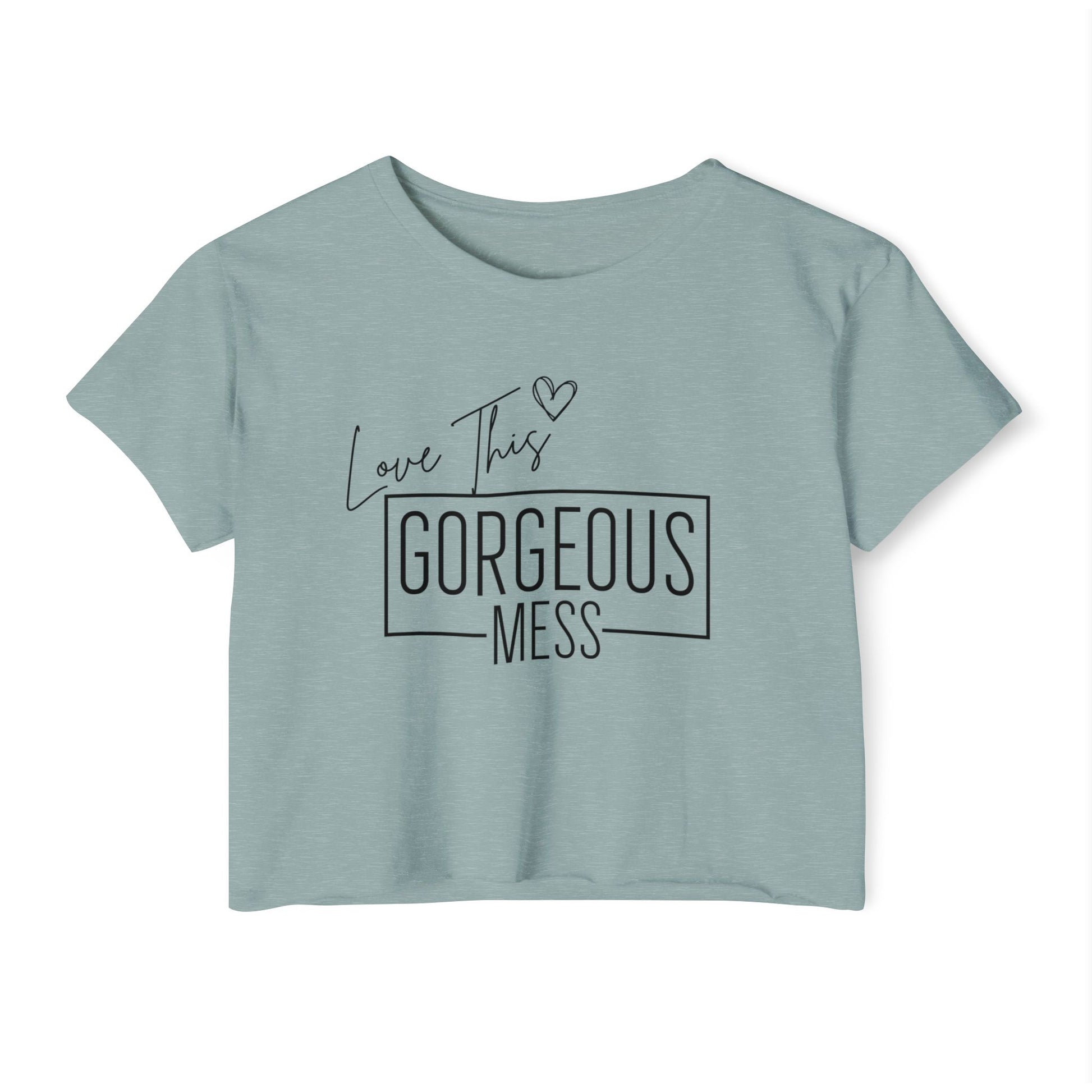 Embrace the beauty of chaos with our conversation tee featuring the fun and sassy slogan, "Love this gorgeous mess!" Crafted from a soft and durable 65% polyester, 35% cotton blend, this tee is built to keep up with all your weekend adventures. The effortlessly stylish design, complete with raw-edge sleeves and hems, offers a laid-back, cropped fit that’s perfect for any casual outing.