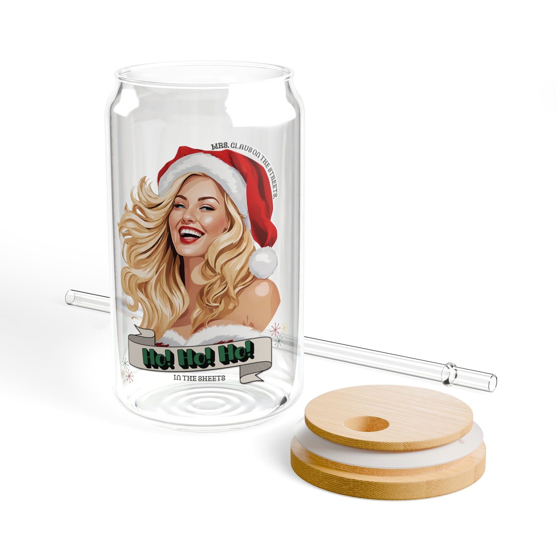 Sip in style with our 16oz Sipper Glass, featuring the playful and cheeky Mrs. Claus saying, "Mrs. Claus on the streets, Ho, Ho, Ho in the sheets." Crafted from clear tempered glass, this sipper is as durable as it is sleek, perfect for everything from festive cocktails to your favorite juices. With FDA certification, BPA-free materials, and Cal Prop 65 compliance, you can enjoy every sip with complete peace of mind. Whether you're hosting holiday parties, celebrating Christmas, or looking for a fun, humorous gift, this glass is sure to bring smiles and conversation.