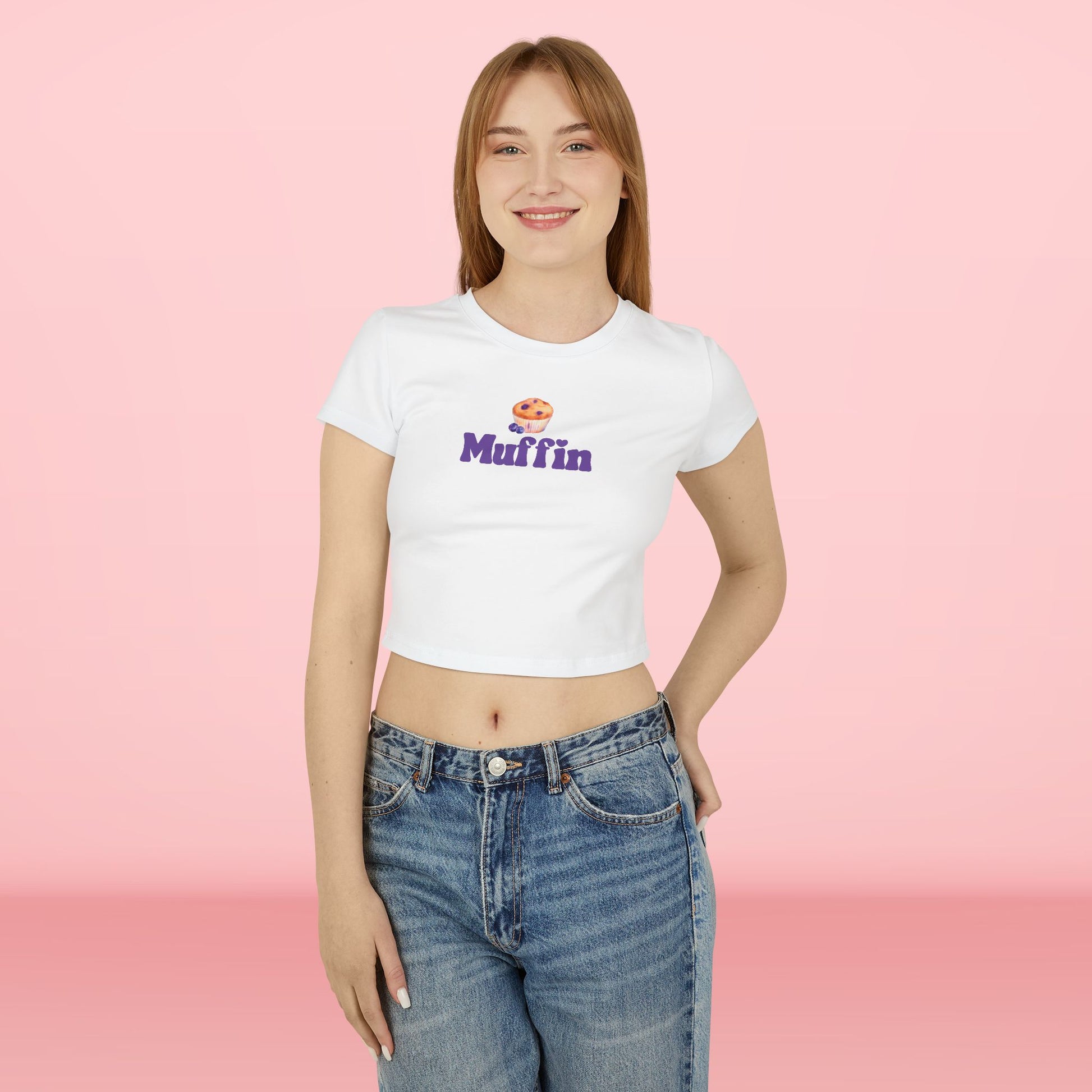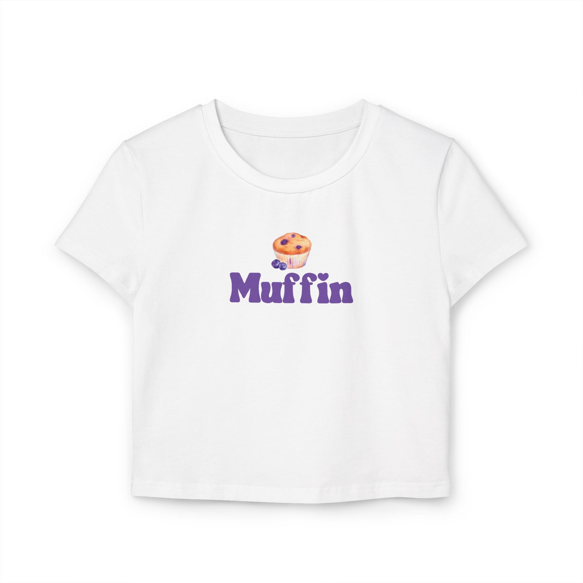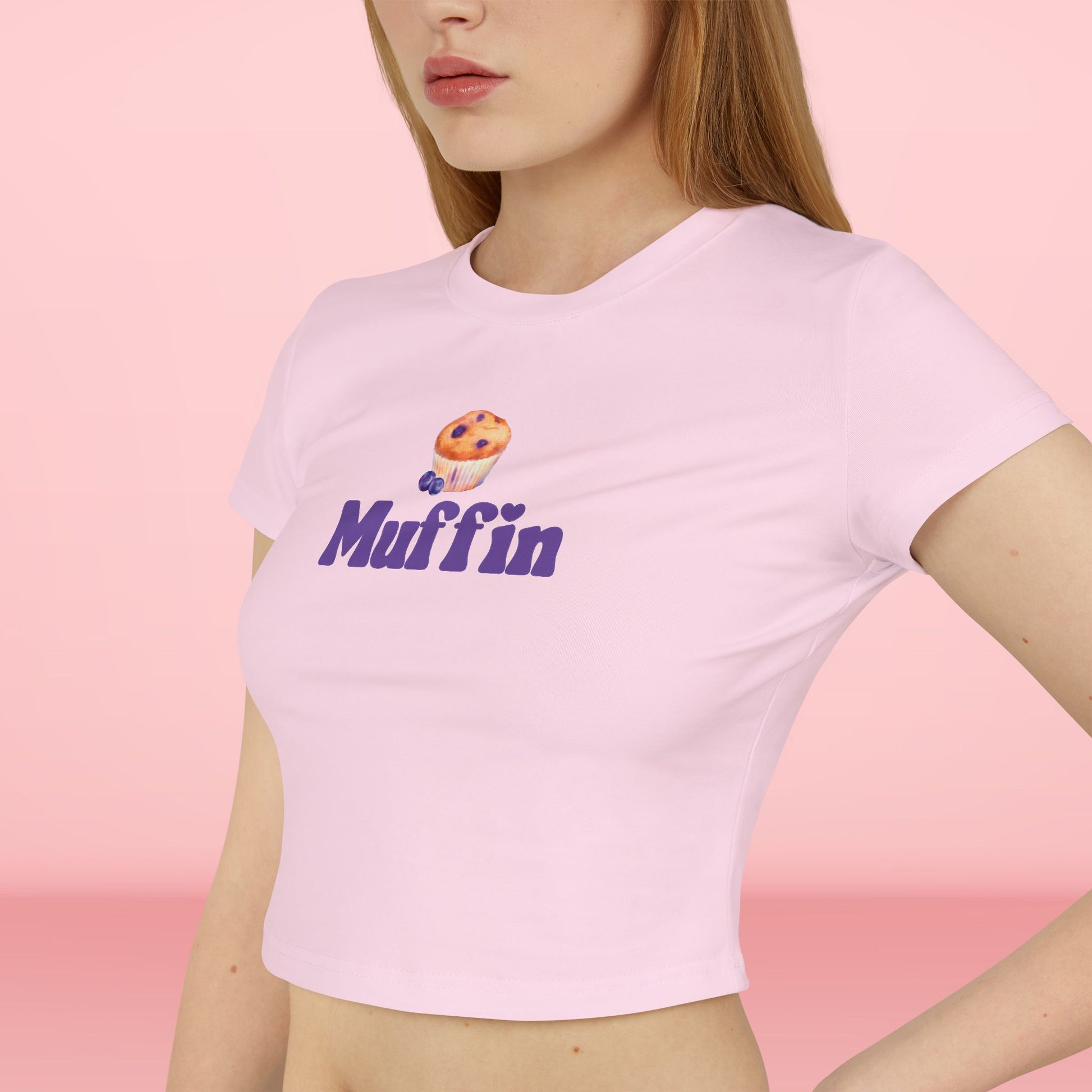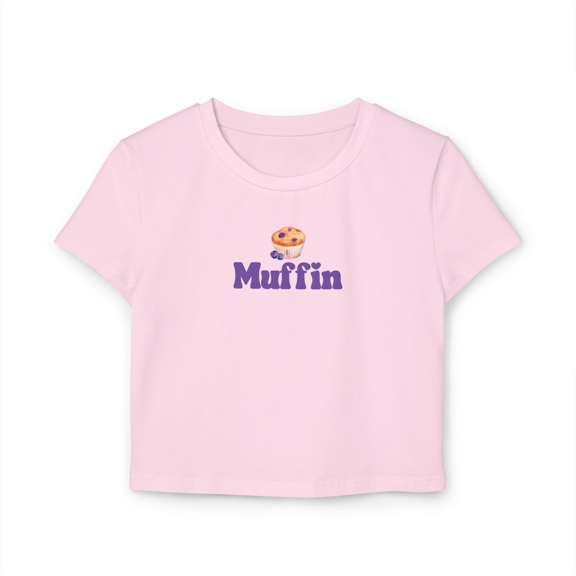 Get ready to turn heads with the Muffin Baby Tee, a charming addition to the Sugar! Collection. Featuring playful purple "Muffin" lettering and an adorable blueberry muffin graphic, this baby tee is as sweet as it gets.