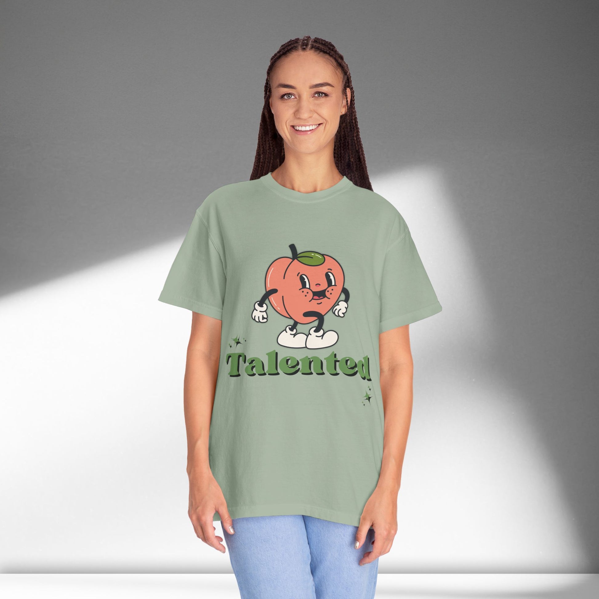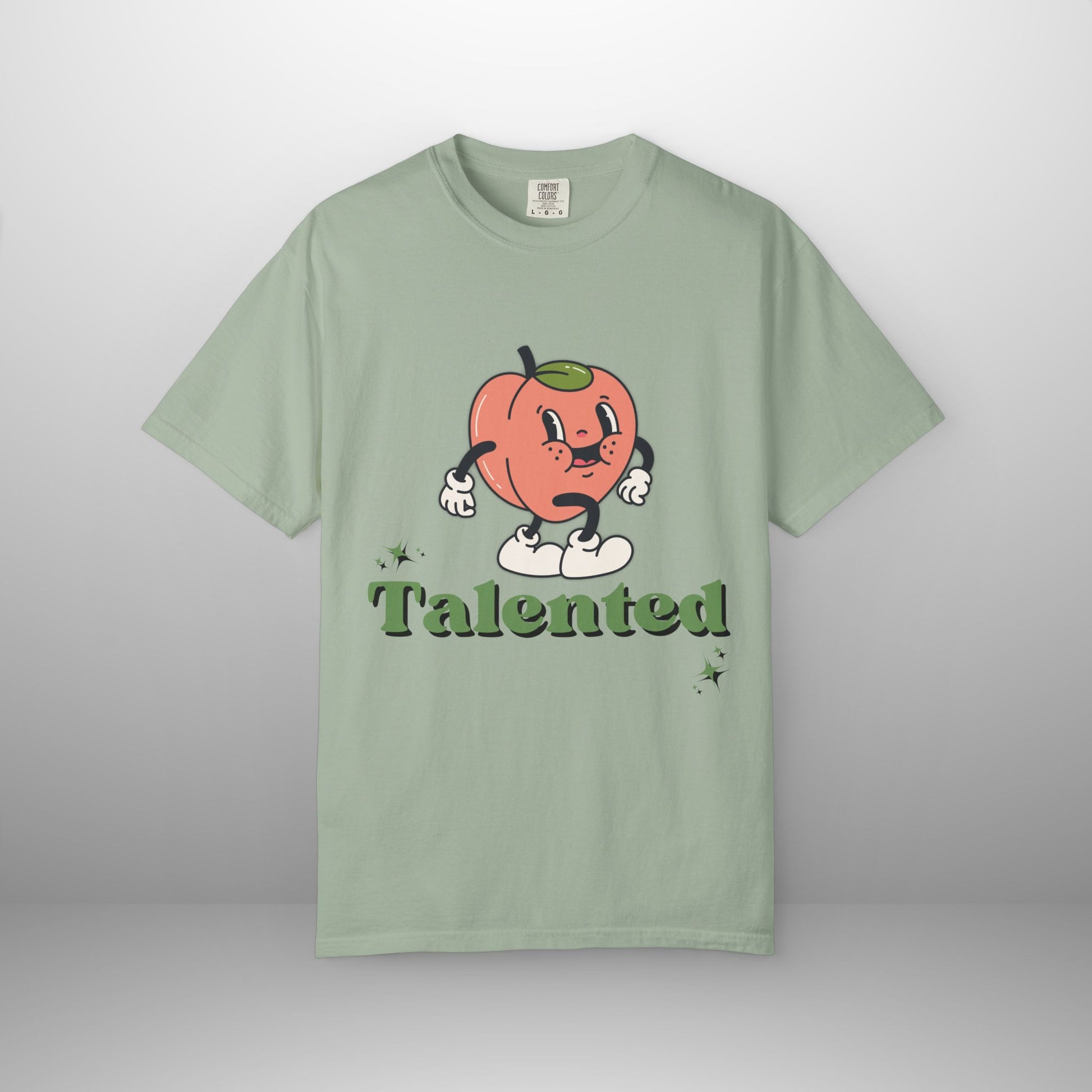 Bring the charm and a dash of sass with our Talented retro peach tee. Featuring a cheerful peach graphic and playful lettering, this shirt blends humor with vintage flair. Made from 100% ring-spun US cotton, it’s soft, cozy, and built for everyday wear—perfect for when you want your outfit to say you’ve got skills (and style) without even trying. 🍑