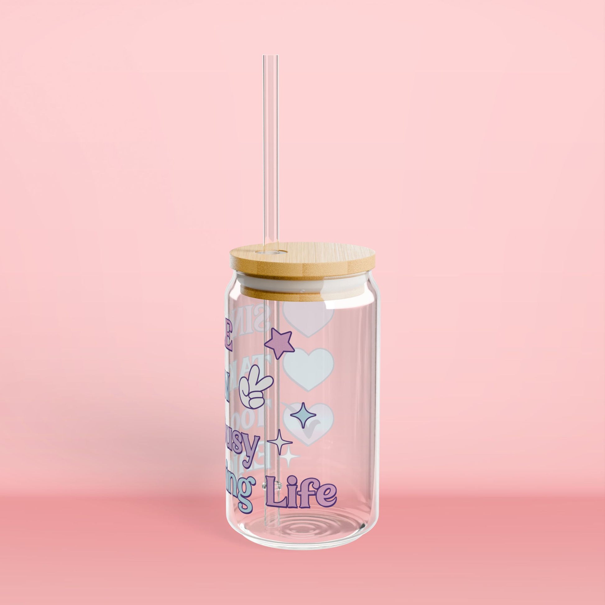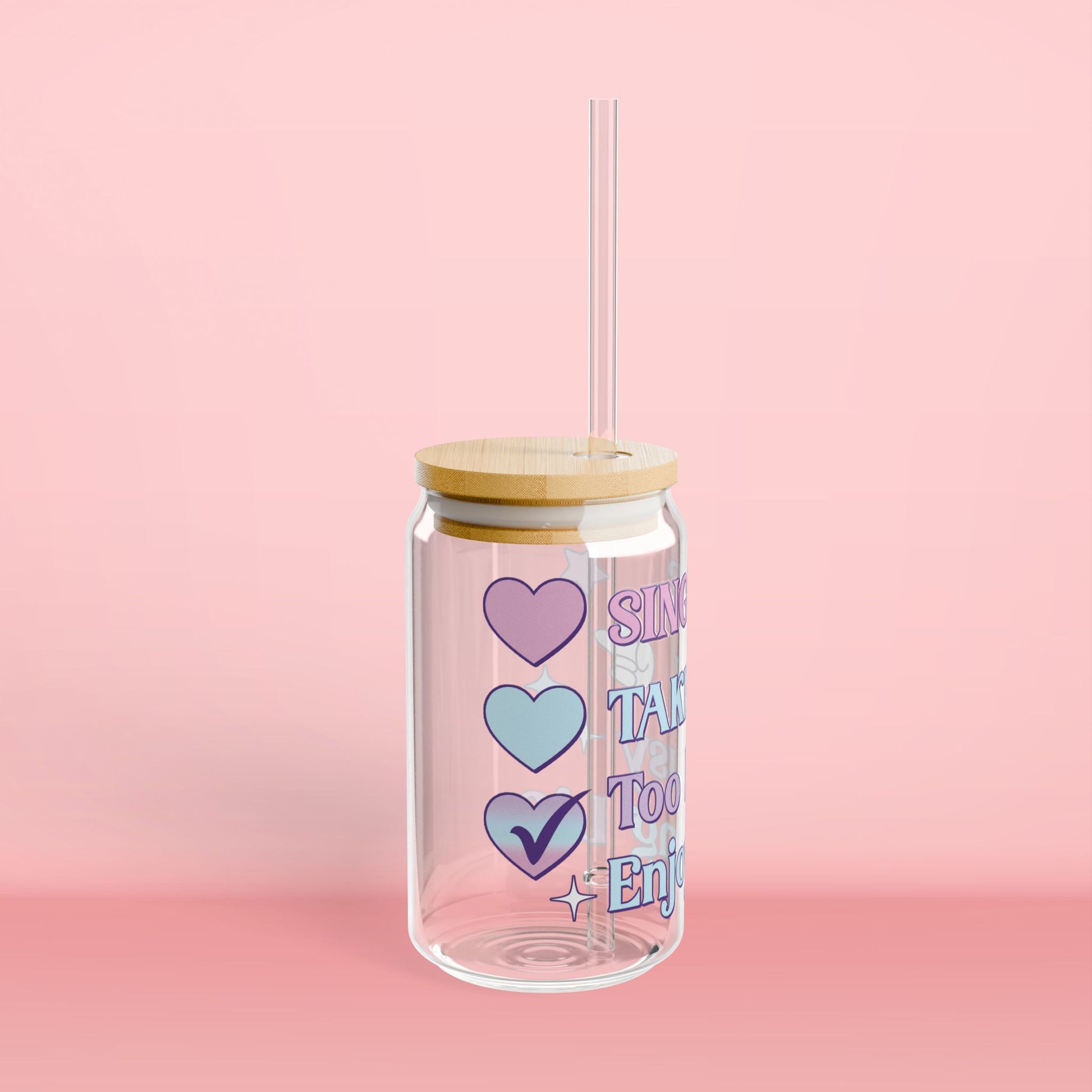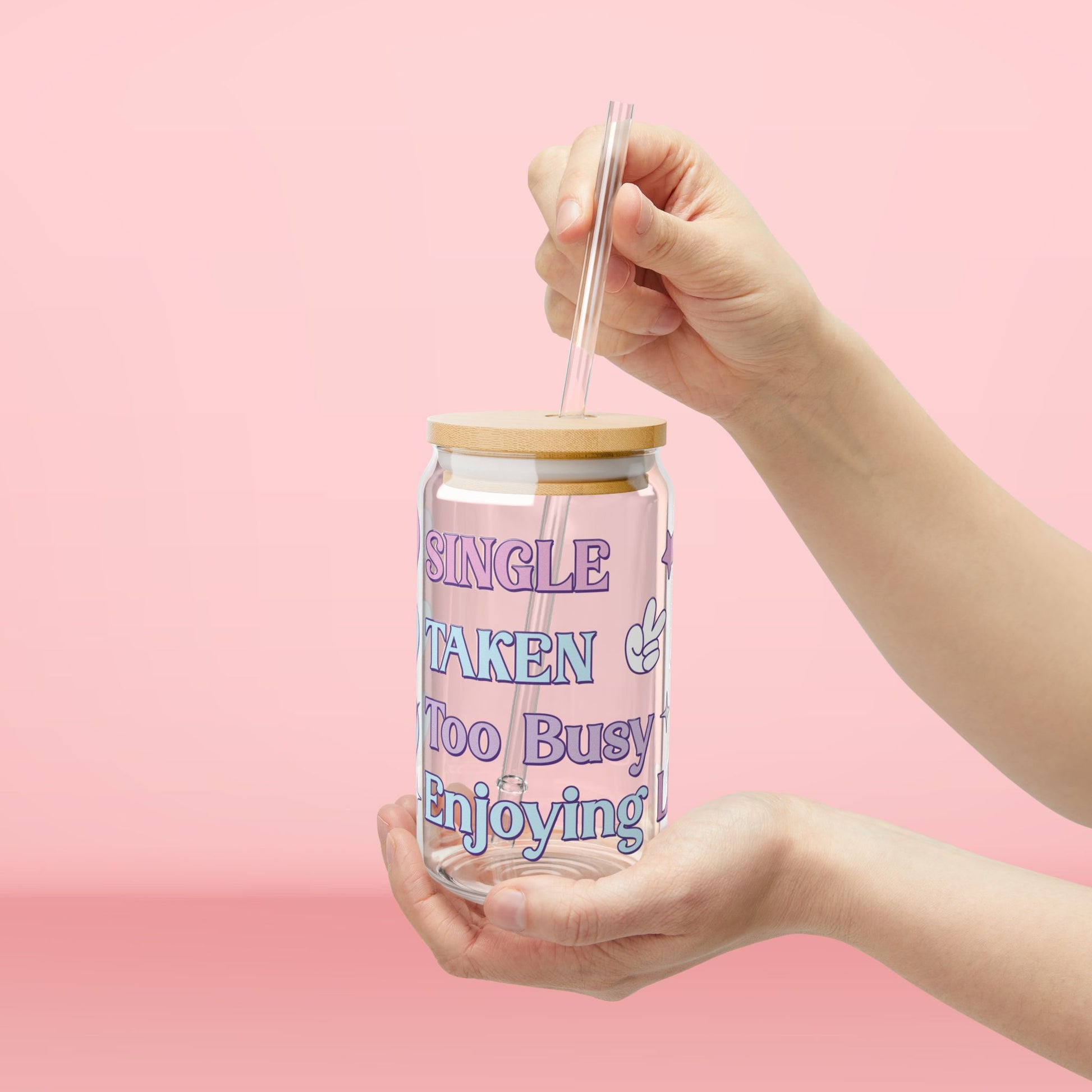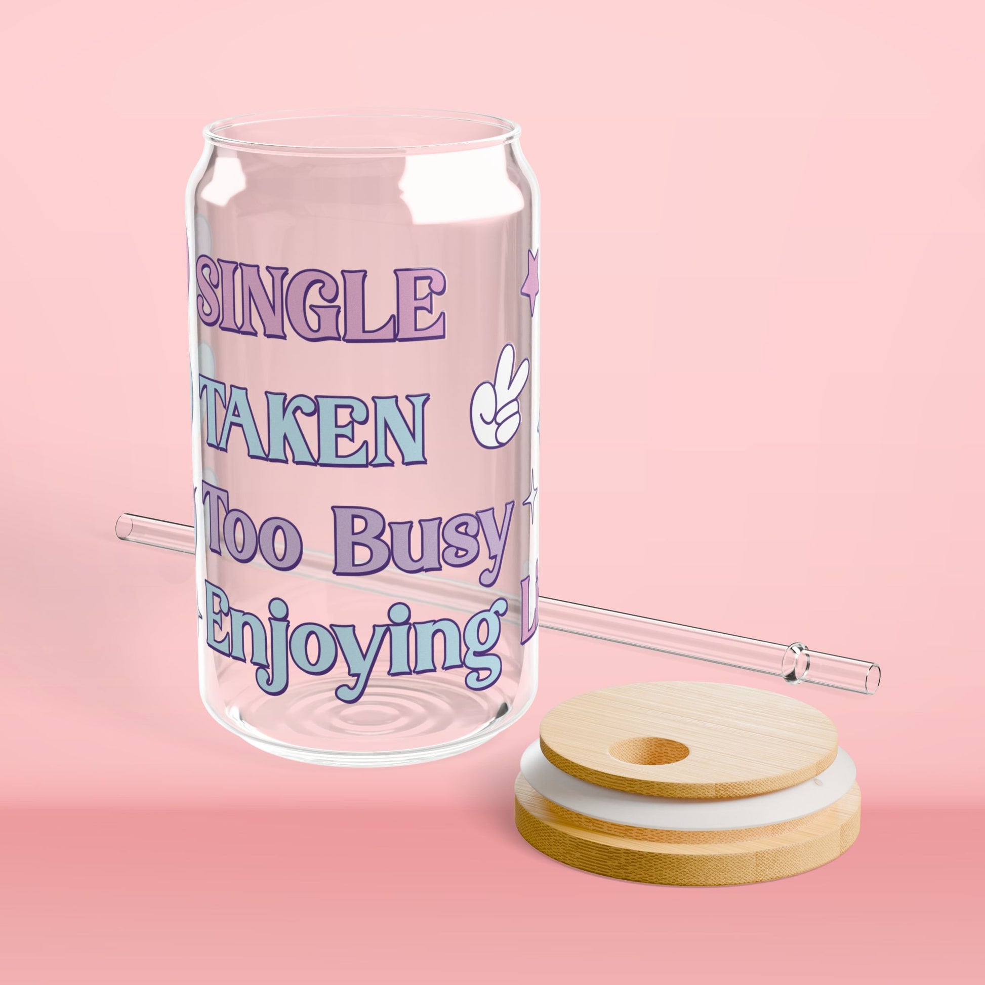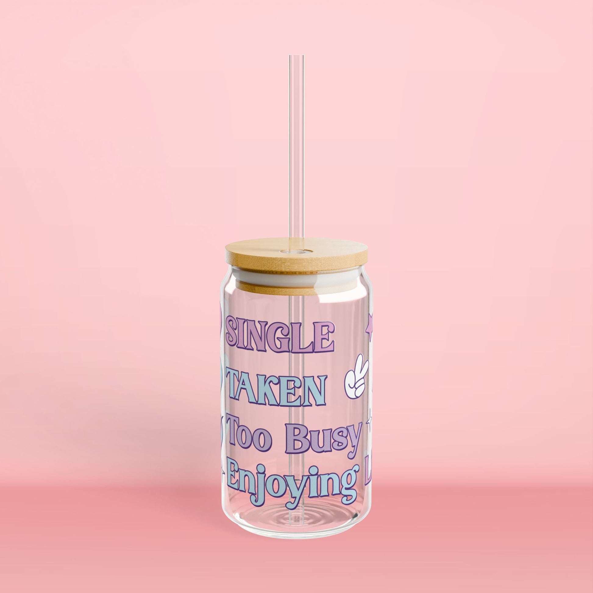 Let your drink do the talking with the Too Busy Enjoying Life Glass Cup! Featuring the fun and relatable "Single, Taken, Too Busy Enjoying Life" design, this 16oz sipper glass is perfect for those who have no time for distractions—just good vibes and great drinks.