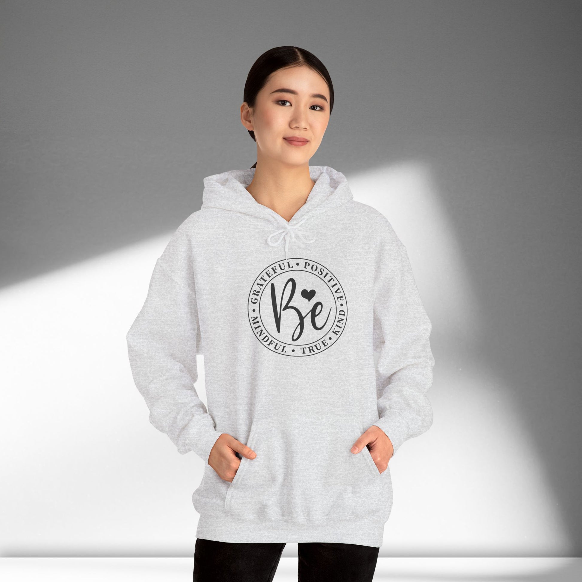 Wrap yourself in comfort and positivity with our “Be Positive” hoodie, designed to keep you cozy while spreading good vibes. Featuring a motivational front graphic that reads “Be grateful, positive, kind, true, and mindful,” this hoodie is more than just loungewear—it’s a daily reminder to live with intention.